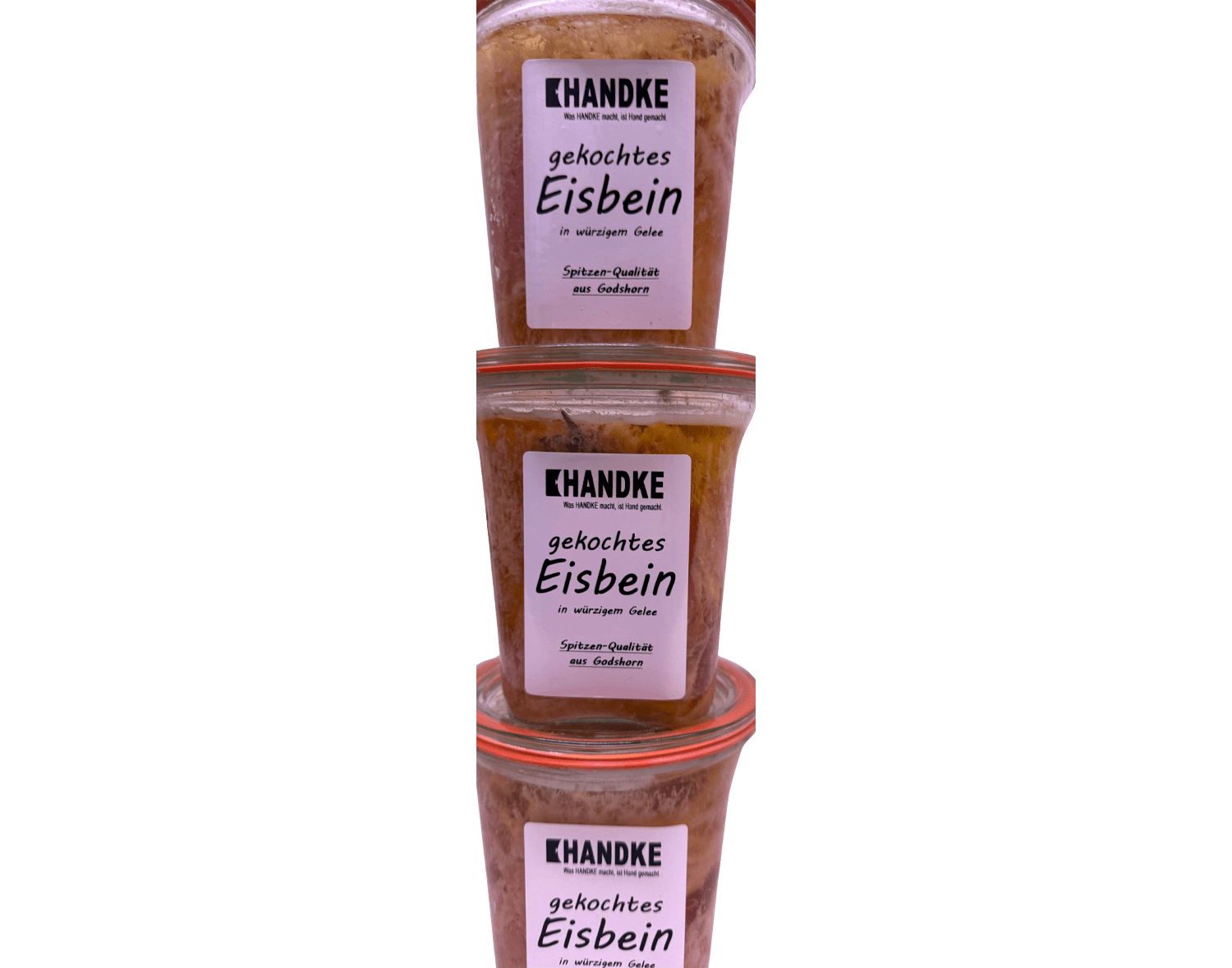 Im WECK Glas kommt das Eisbein besonders gut zur Geltung: Die durchsichtige Gelatine umschließt das Fleisch und verleiht dem Gericht eine elegante Optik. Oft wird es mit frischen Kräutern, Gewürzen und Gemüse verfeinert, was den Geschmack zusätzlich bereichert. Serviert wird es häufig als Vorspeise oder auf einem Buffet, begleitet von Senf, Brot und eingelegtem Gemüse.